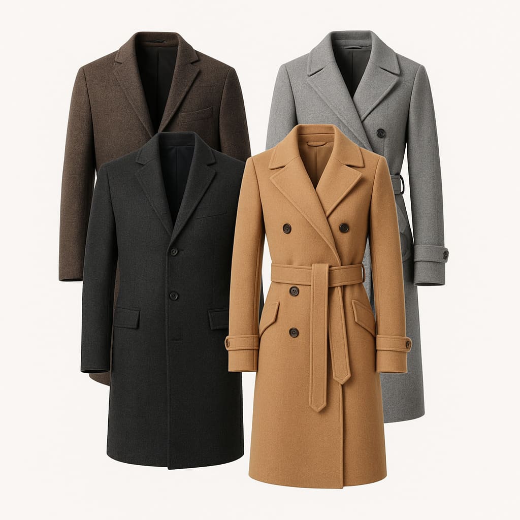 • плащи и тренчи из плотных шерстяных материалов или смесовых тканей с преобладанием шерсти;